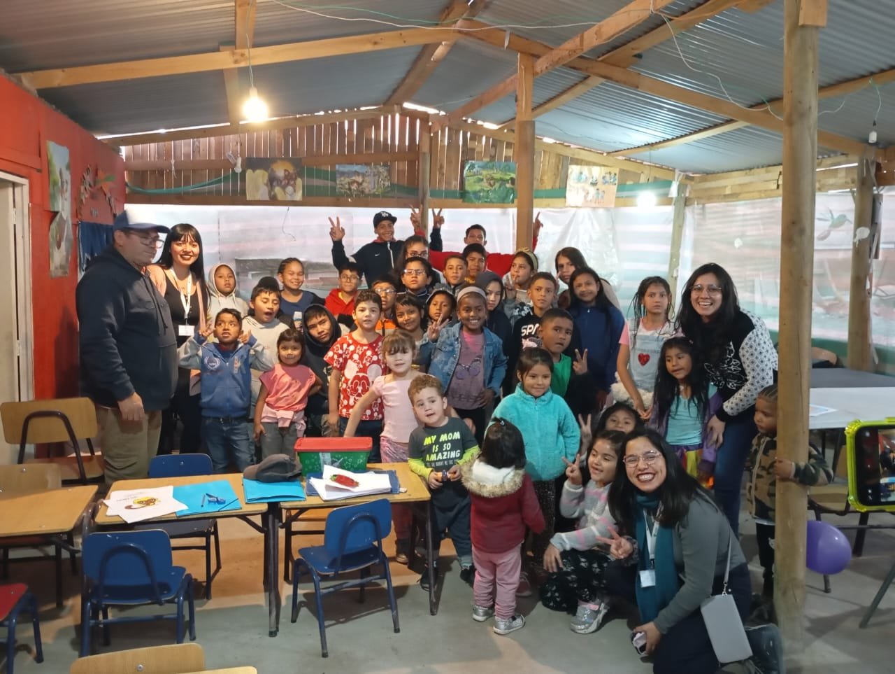 Hace cinco años, comenzamos nuestra labor solidaria en la Nueva Etapa Colonias Extranjeras. Llegamos aquí por la necesidad de nuestro hija con discapacidad y pronto nos dimos cuenta de la gran necesidad que existía entre los niños y adolescentes del asentamiento. Conmovidos por esta situación, empezamos a recolectar ropa y zapatos entre nuestros amigos, y así nació nuestra labor de ayuda. Inicialmente, ofrecíamos desayunos y almuerzos a 25 niños, y con el tiempo, más personas se unieron a nuestra causa, permitiéndonos aumentar el alcance de nuestra ayuda. Hoy en día, contamos con un comedor para 100 niños y diversos talleres educativos y recreativos, atendiendo a 98 niños entre 7 meses y 17 años.